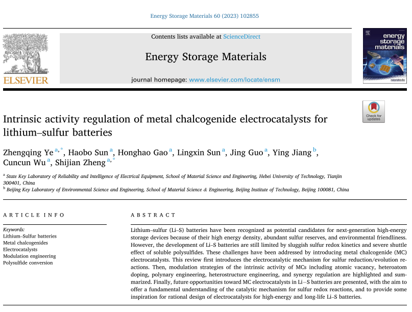 Intrinsic activity regulation of metal chalcogenide electrocatalysts for lithium–sulfur batteries Energy Storage Materials 2023