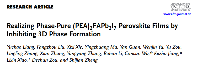 Realizing Phase‐Pure (PEA)2FAPb2I7 Perovskite Films by Inhibiting 3D Phase Formation,Advanced Functional Materials,2024