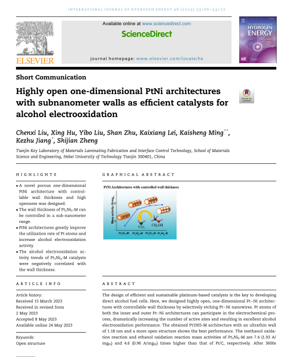 Highly open one-dimensional PtNi architectures with subnanometer walls as efficient catalysts for alcohol electrooxidation Science Direct 2023
