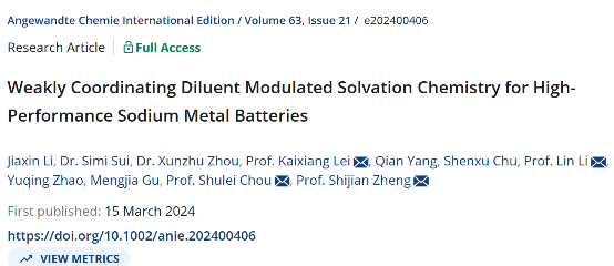 Weakly Coordinating Diluent Modulated Solvation Chemistry for High-Performance Sodium Metal Batteries,Angew. Chem. Int. Ed.,2024.05.21.