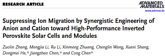 Suppressing Ion Migration by Synergistic Engineering of Anion and Cation towards High-Performance Inverted Perovskite Solar Cells and Modules,Adv. Mater.,2024,36,2313860.