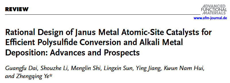 Rational Design of Janus Metal Atomic-Site Catalysts for Efficient Polysulfide Conversion and Alkali Metal Deposition: Advances and Prospects,Advanced Functional Materials,2024.02.01.