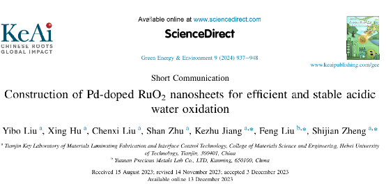 Construction of Pd-doped RuO2 nanosheets for efficient and stable acidic water oxidation,Green Energy & Environment,2024.06,937-948
