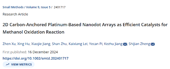 2D Carbon-Anchored Platinum-Based Nanodot Arrays as Efficient Catalysts for Methanol Oxidation Reaction,Small Methods,2024