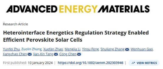 Heterointerface Energetics Regulation Strategy Enabled Efficient Perovskite Solar Cells,Adv. Energy Mater.,2024,14,2303946.