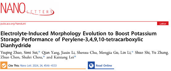 Electrolyte-Induced Morphology Evolution to Boost Potassium Storage Performance of Perylene-3,4,9,10-tetracarboxylic Dianhydride,Nano Lett.,2024