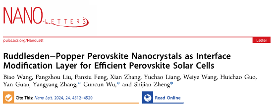 Ruddlesden–Popper Perovskite Nanocrystals as Interface Modification Layer for Efficient Perovskite Solar Cells,Nano Letters,2024.