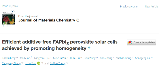 Efficient Additive-free FAPbI3 Perovskite Solar Cells by Promoting Homogeneity,Journal of Materials Chemistry C,2024.