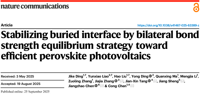 Stabilizing buried interface by bilateral bond strength equilibrium strategy toward efficient perovskite photovoltaics,Nat. Commun.,2025,16,8407.