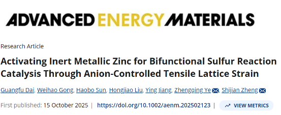 Activating Inert Metallic Zinc for Bifunctional Sulfur Reaction Catalysis Through Anion-Controlled Tensile Lattice Strain,Advanced Energy Materials,2025.10.15.