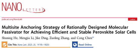 Multisite Anchoring Strategy of Rationally Designed Molecular Passivator for Achieving Efficient and Stable Perovskite Solar Cells,Nano Lett.,2025,25,14195–14203.