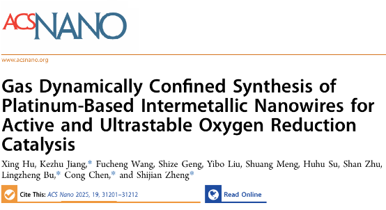 Gas Dynamically Confined Synthesis of Platinum-Based Intermetallic Nanowires for Active and Ultrastable Oxygen Reduction Catalysis,ACS Nano,2025.34,31201–31212