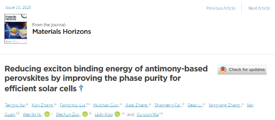 Reducing exciton binding energy of antimony-based perovskites by improving the phase purity for efficient solar cells,Materials Horizons,2025