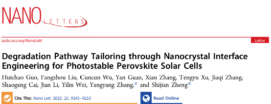 Degradation Pathway Tailoring through Nanocrystal Interface Engineering for Photostable Perovskite Solar Cells,Nano Letters,2025.