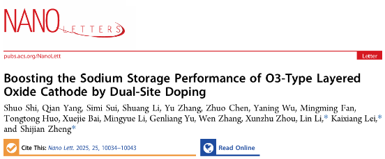 Boosting the Sodium Storage Performance of O3-Type Layered Oxide Cathode by Dual-Site Doping,Nano Lett.,2025