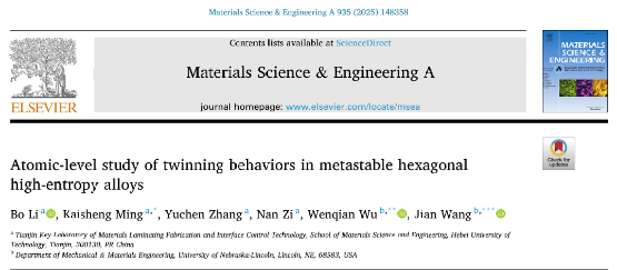 Atomic-level Study of Twinning Behaviors in Metastable Hexagonal High-Entropy Alloys,Materials Science and Engineering: A,2025
