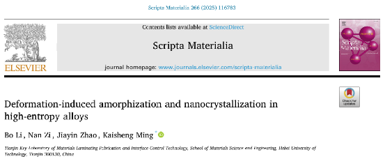 Deformation-induced amorphization and nanocrystallization in high-entropy alloys,Scripta Materialia,2025,266,116783