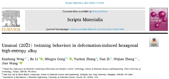 Unusual {20 1} twinning behaviors in deformation-induced hexagonal high-entropy alloy,Scripta Materialia,2025,264,116700