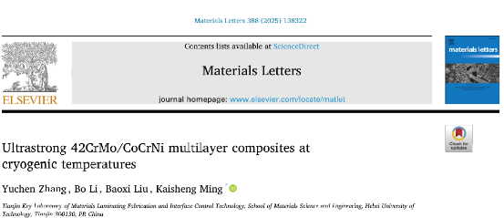 Ultrastrong 42CrMo/CoCrNi multilayer composites at cryogenic temperatures,Materials Letters,2025,388,138322
